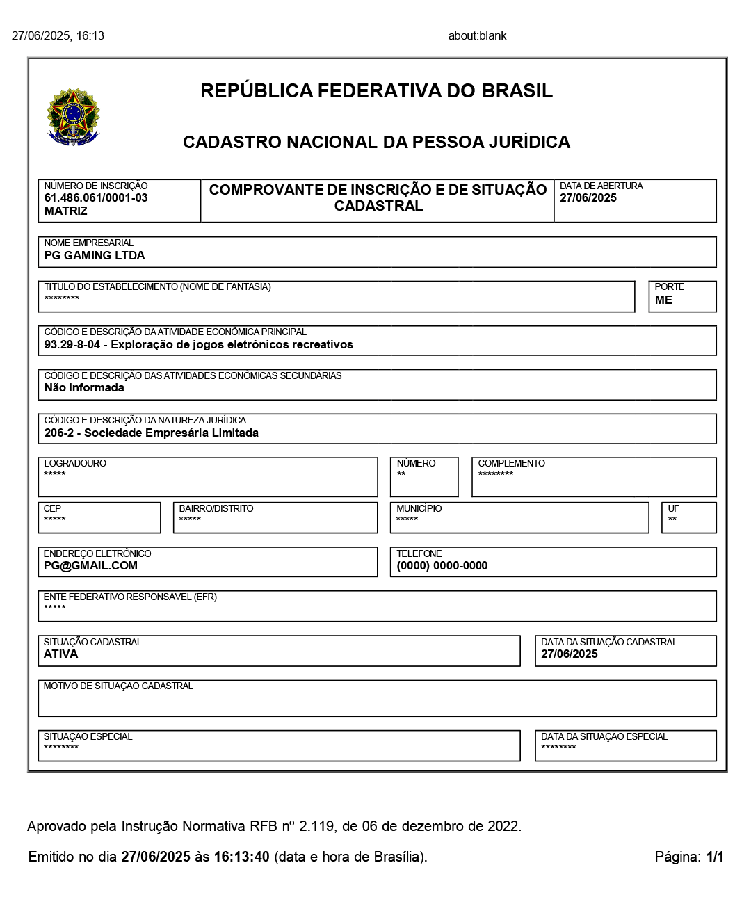 NÚMERO DE INSCRIÇÃO 61.486.061/0001-03