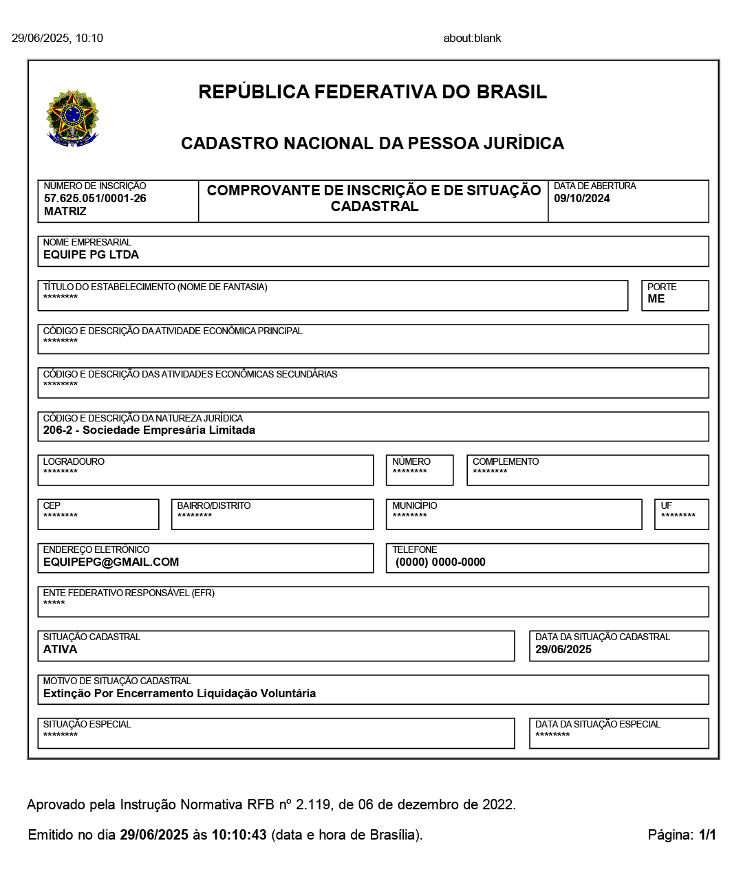 NÚMERO DE INSCRIÇÃO 57.625.051/0001-26
